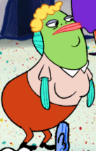 Patrick gets a makeover and becomes Patricia a lipstick-wearing pigtailed blonde in a crop top and mini-skirt whom Squidward and Mr. She then flirts with Squidward causing him to blush.